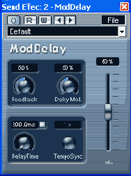 Возле каждой из воспроизводящих головок расположен регулятор времени задержки Delay (в реальном магнитофоне для изменения задержки пришлось бы передвигать головки вдоль канала транспортировки ленты). Если включить кнопку Sync, то задержка станет ритмизированной: кратной некоторой заданной доле музыкального такта. Соотношение уровней исходного и обработанного сигналов регулируется слайдером Wet — Dry. В каждом из каналов задержки доступны 4 параметра: